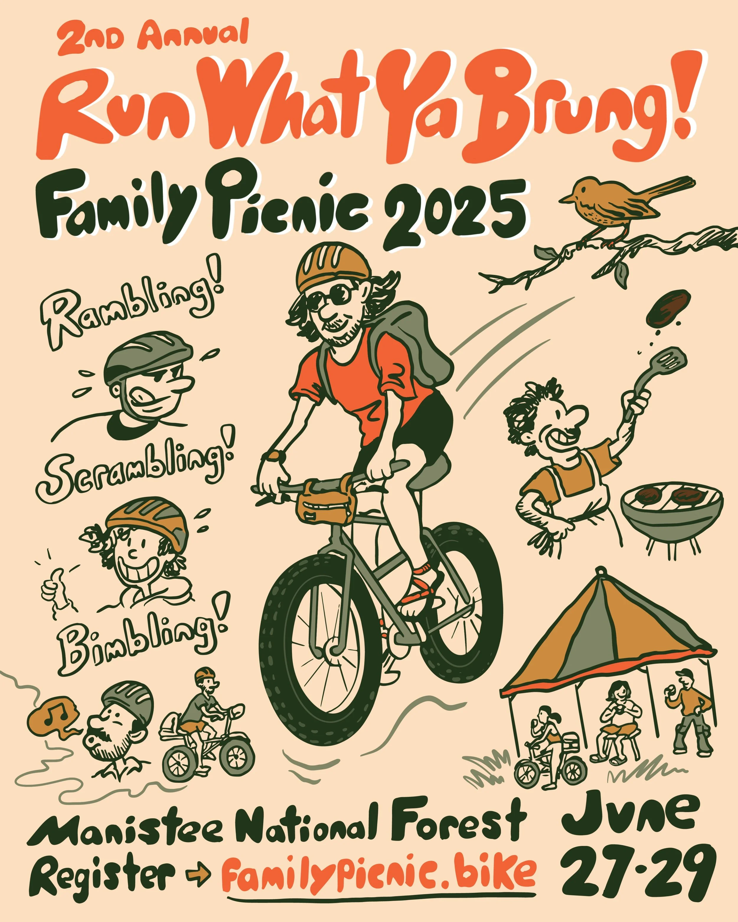At long last Graham and I have gone live with the Run What Ya Brung Family Picnic. We had so much fun at Hodag Country Ramble and Nutmeg Nor'easter that we thought it was high time to do a little something of our own up in the Manistee National Forest. We've scouted heavily to make the routes the best bang-for-the-buck possible with minimal NW MI sand. We love these routes and are really excited to share them with you all. Join us!