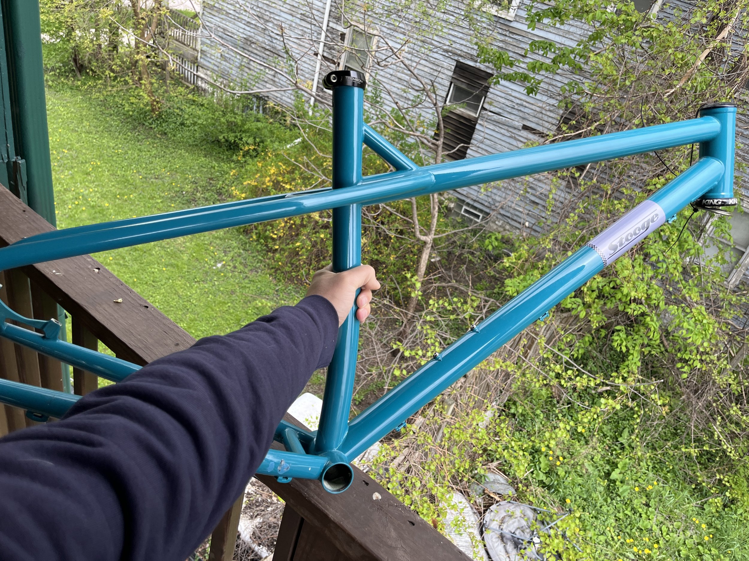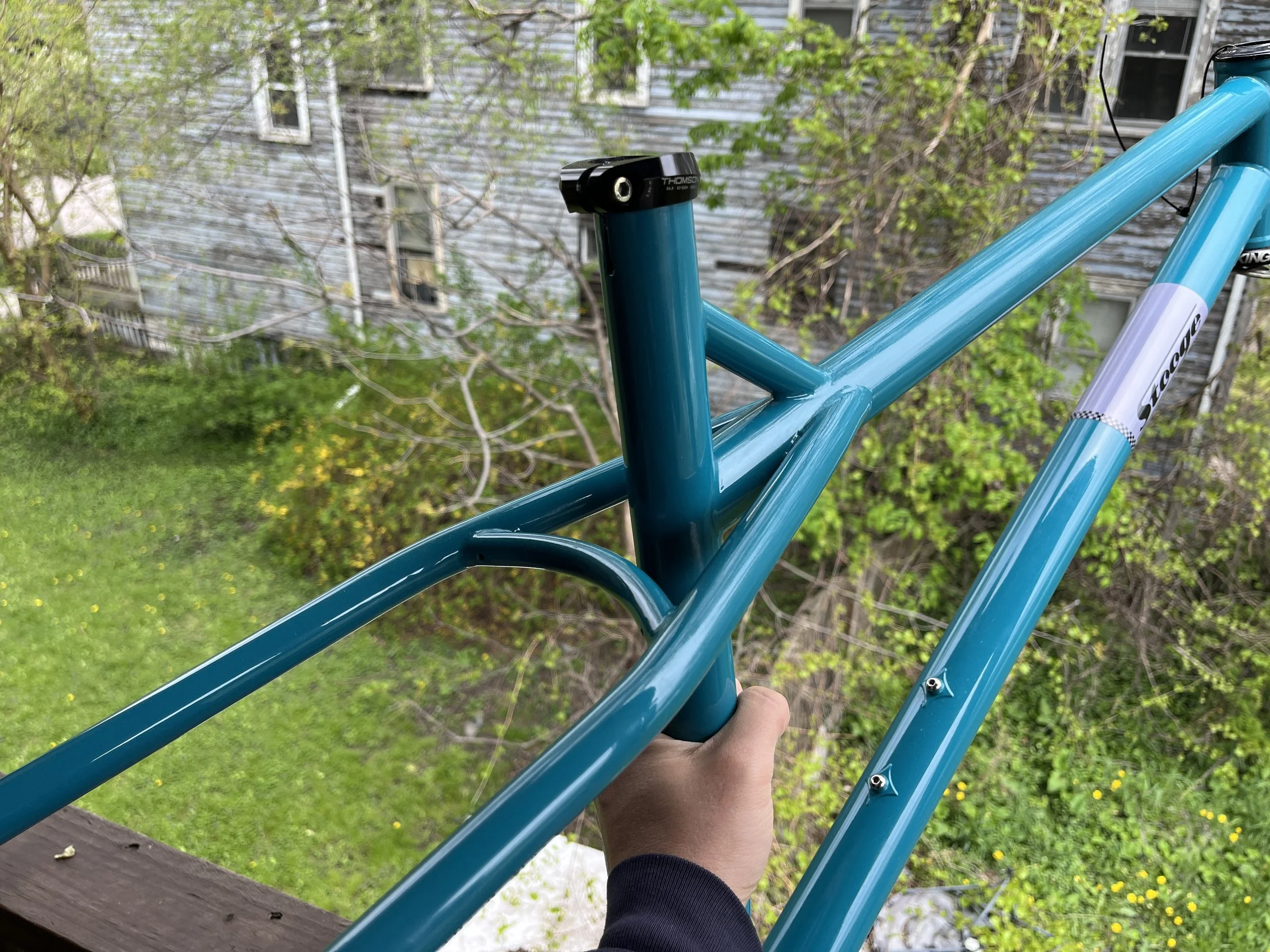 Somehow I managed to get my hands on the only steel Stooge R-Buckle fat bike in the world. I’ve been wanting a Stooge fat bike forever, and I hear the tale of how the original was tanked by the fat bike bubble burst + Brexit. But a couple weeks ago my phone started lighting up with friends sending me a listing for a really good condition frame + Chris King headset + Thomson seat post clamp + KS dropper + Stooge Moto Bars. I could hardly believe it. Even shipped from the UK it was a great price. So I went for it.